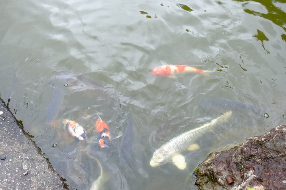 退蔵院の鯉は警戒心が薄いのか、すぐに寄ってきます。 教育せねば!