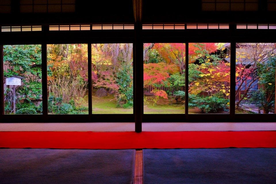 茶席「大休庵」より。 毎年、12月に入るとこのような風景が広がります。 拝観者も少なく、ゆっくり紅葉を楽しめます。 穴場スポット&時期なのでオススメです!